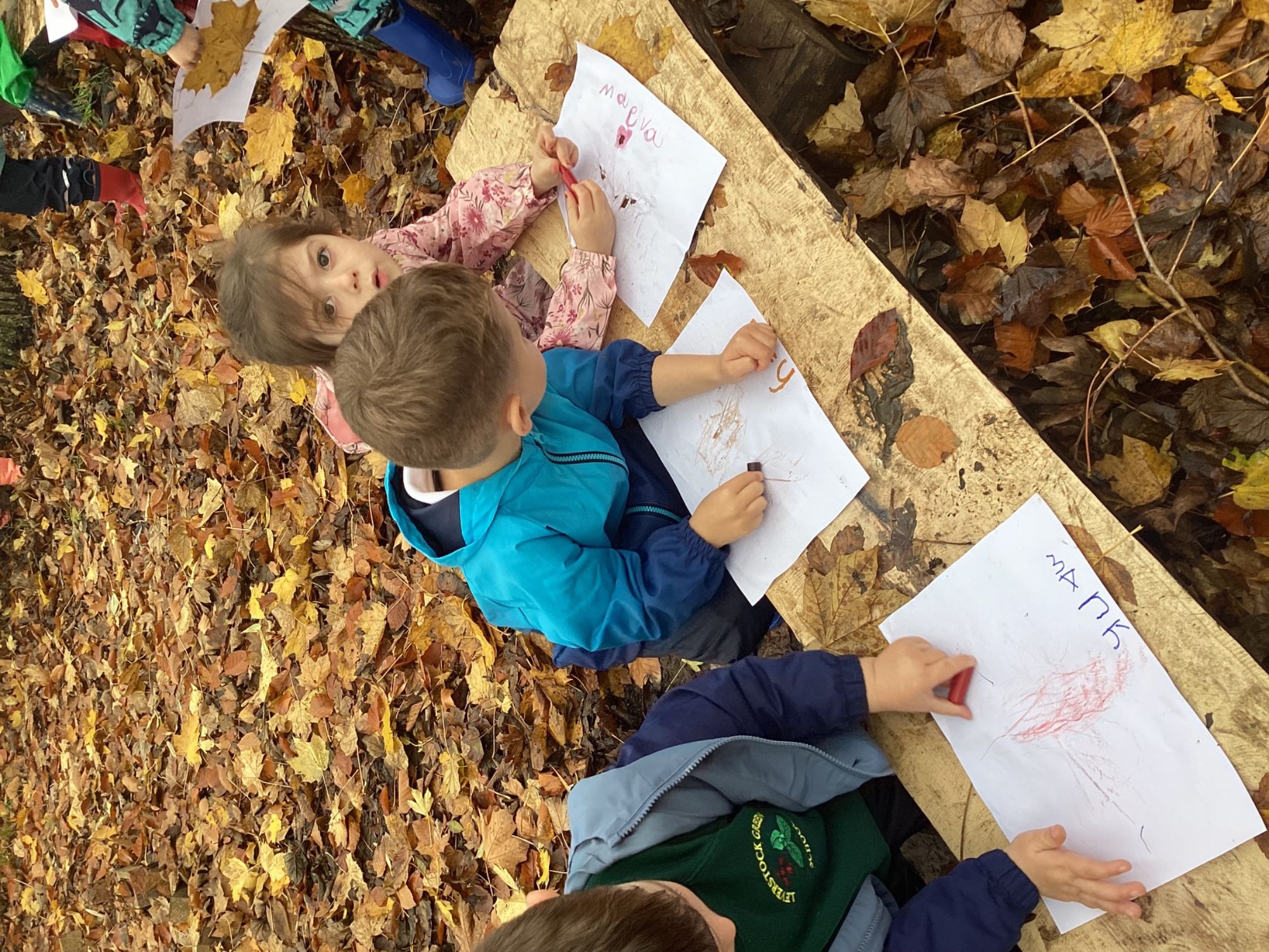 Take a look at the pictures from this week's Forest School session. We had a go at leaf rubbing, looking at the autumn colours and talking about the patterns we could see in nature. We also got to show how we remembered some of our safety rules from the previous week. We will be Forest experts before long!